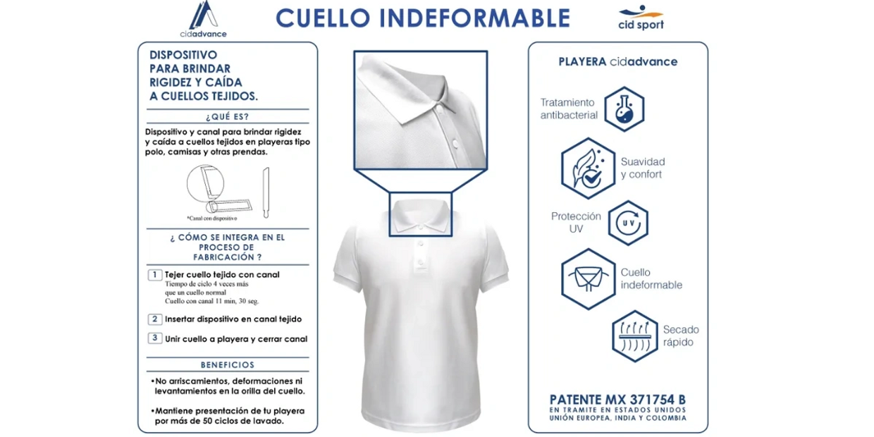 Dispositivo para brindar rigidez y caída a cuellos tejidos